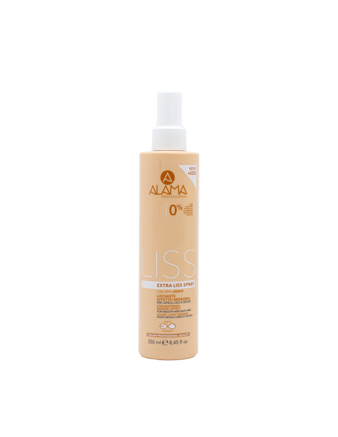 Alama Extra Liss Spray elimina l'effetto crespo con effetto progressivo nel tempo, protegge dal calore e facilita la gestione dello styling.