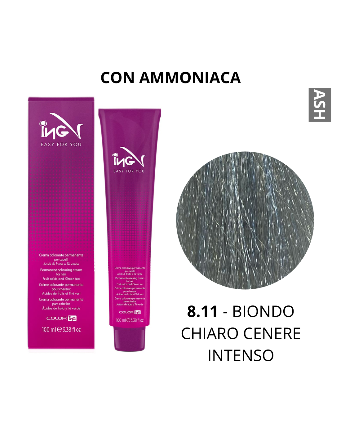 Crema Colorante (8.11 BIONDO CHIARO CENERE INTENSO) - COLOR ING