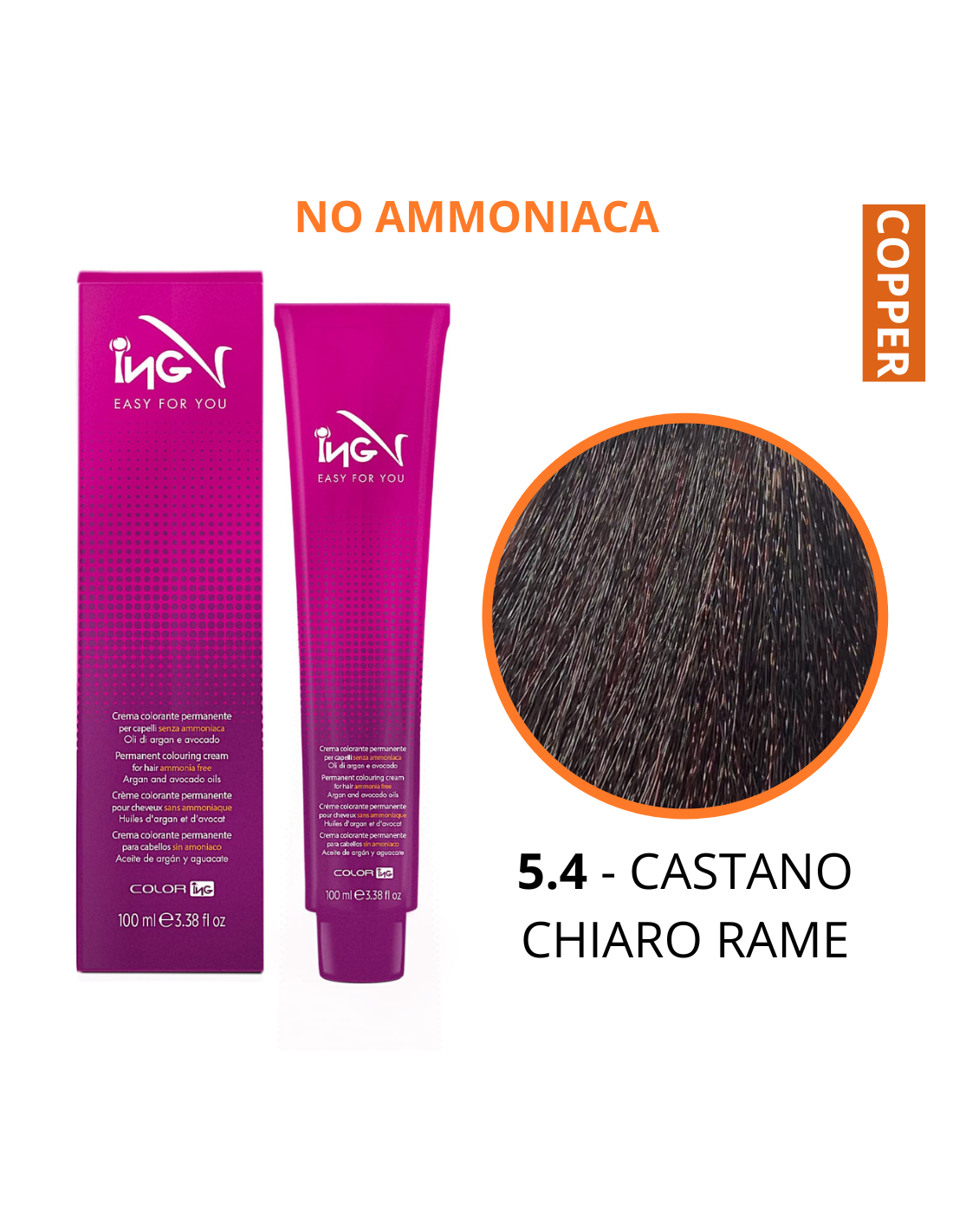 Crema Colorante NO Ammoniaca (5.4 CASTANO CHIARO RAME) - COLOR ING