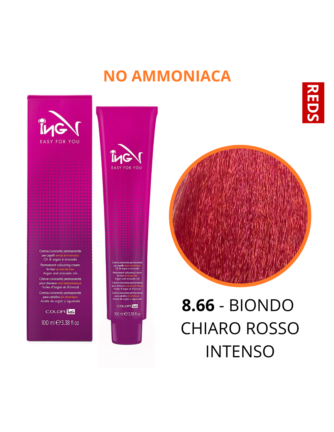 Crema Colorante NO Ammoniaca (8.66 BIONDO CHIARO ROSSO INTENSO) - COLOR ING