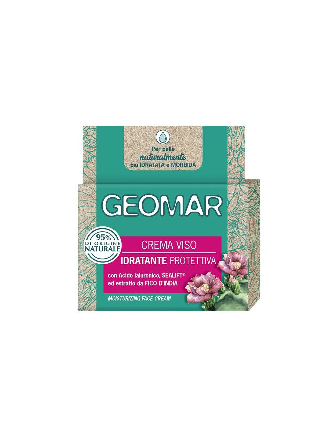 Regalati ogni giorno una pelle naturalmente più idratata, morbida e luminosa. La formula, dalla texture leggera e a rapido assorbimento, è arricchita con Acido Ialuronico di Origine Vegetale con 2 pesi molecolari, Gel d’Aloe Biologico, Bisabololo ed ingredienti Marini e Terrestri. I prodotti Geomar nascono dall'unione di Mare e Terra e contengono almeno il 95% di ingredienti di Origine Naturale.