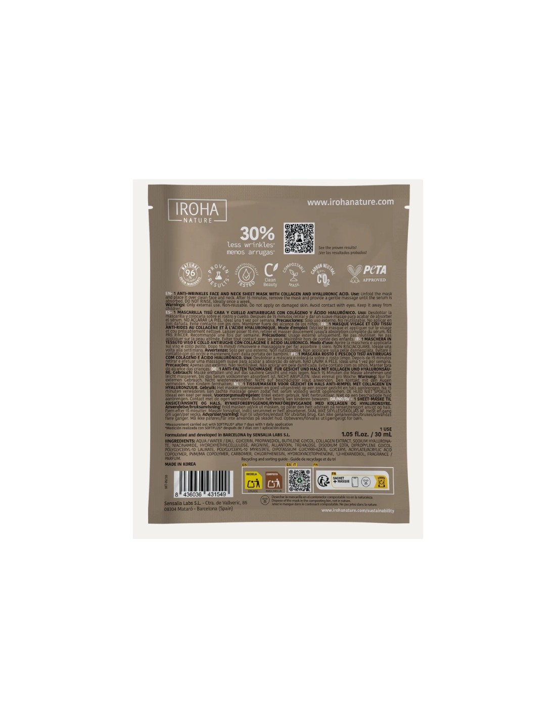 Iroha Nature Maschera Viso in Tessuto Antirughe Con Collagene