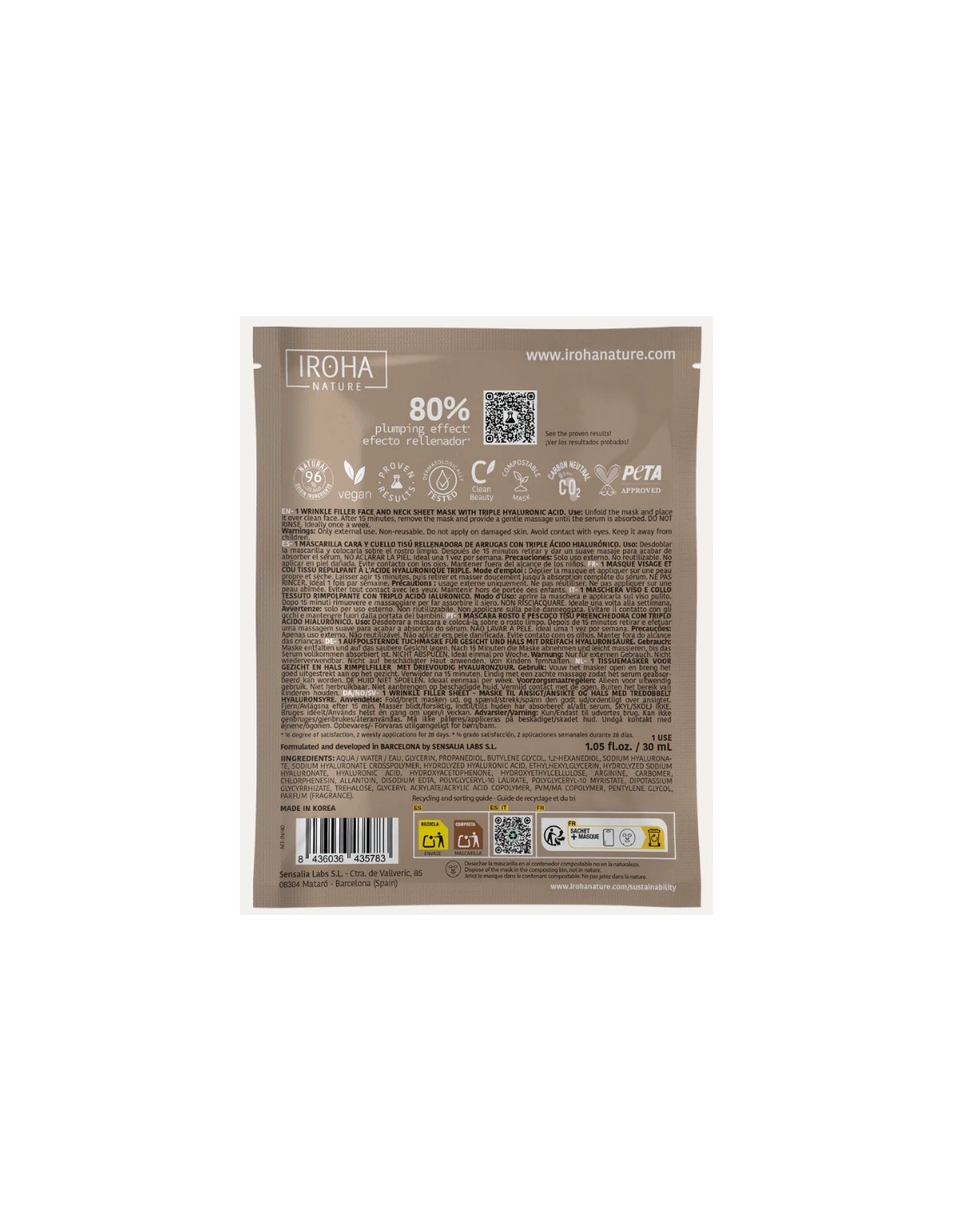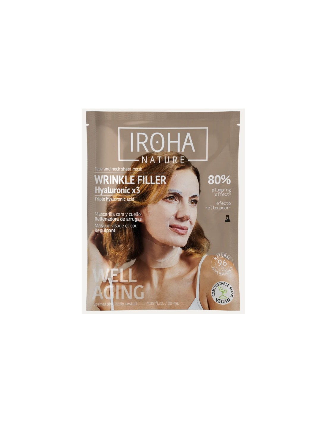 Iroha Nature Maschera Viso in Tessuto Wrinkle Filler Face Con Triplo Acido Ialuronico