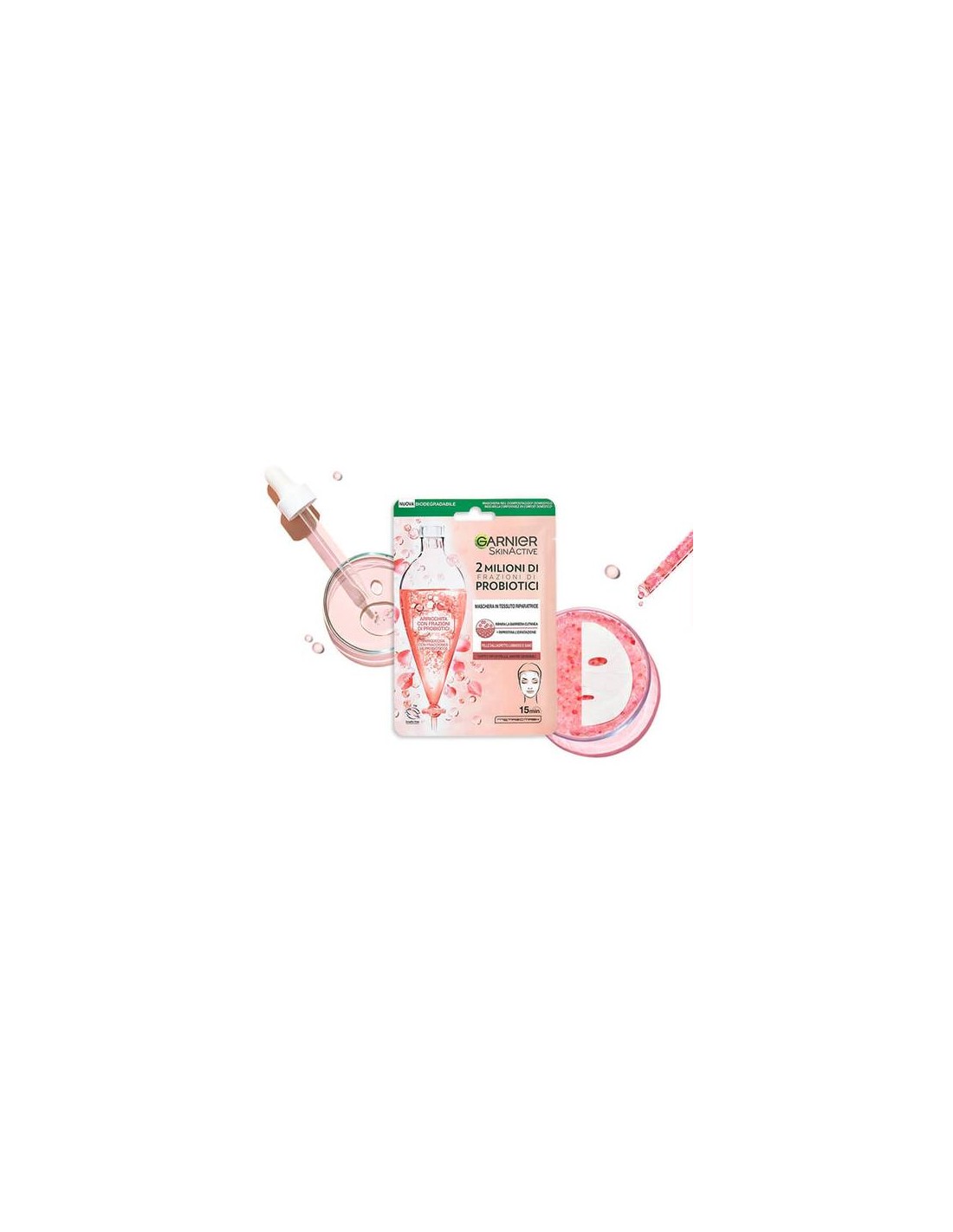 Scopri la nuova maschera in tessuto arricchita con 2 milioni di probiotici per riparare ed idratare la tua pelle; ripara la barriera cutanea e ripristina l'idratazione.