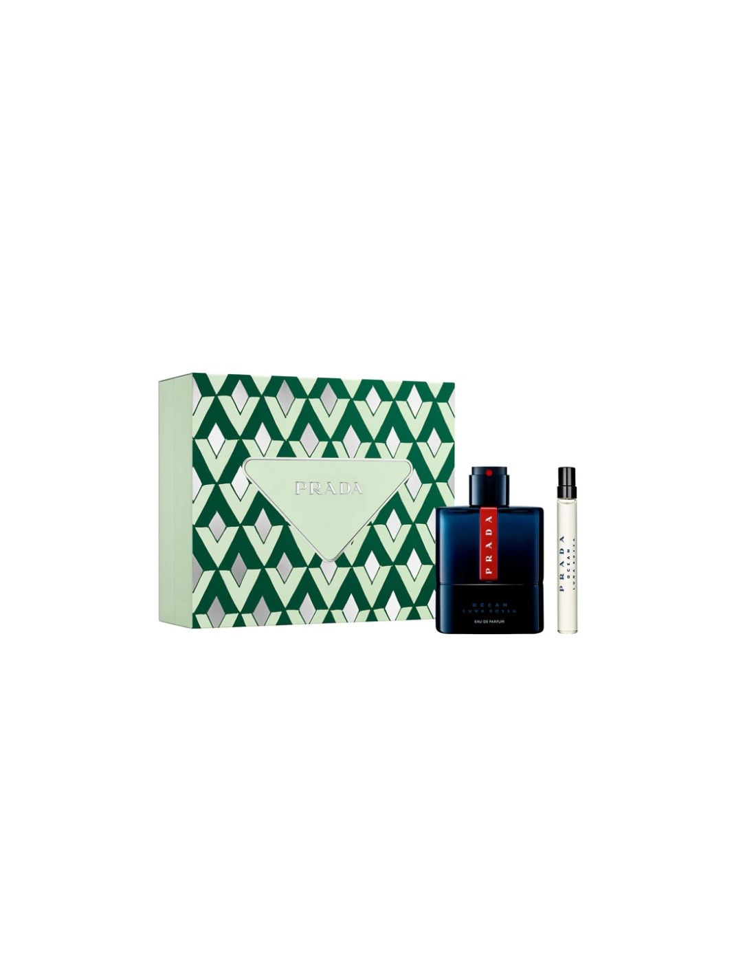 Presentato in un'iconica box Prada questo cofanetto regalo include Luna Rossa Ocean Eau de Parfum in un flacone full-size da 100ml e uno spray da viaggio da 10ml.