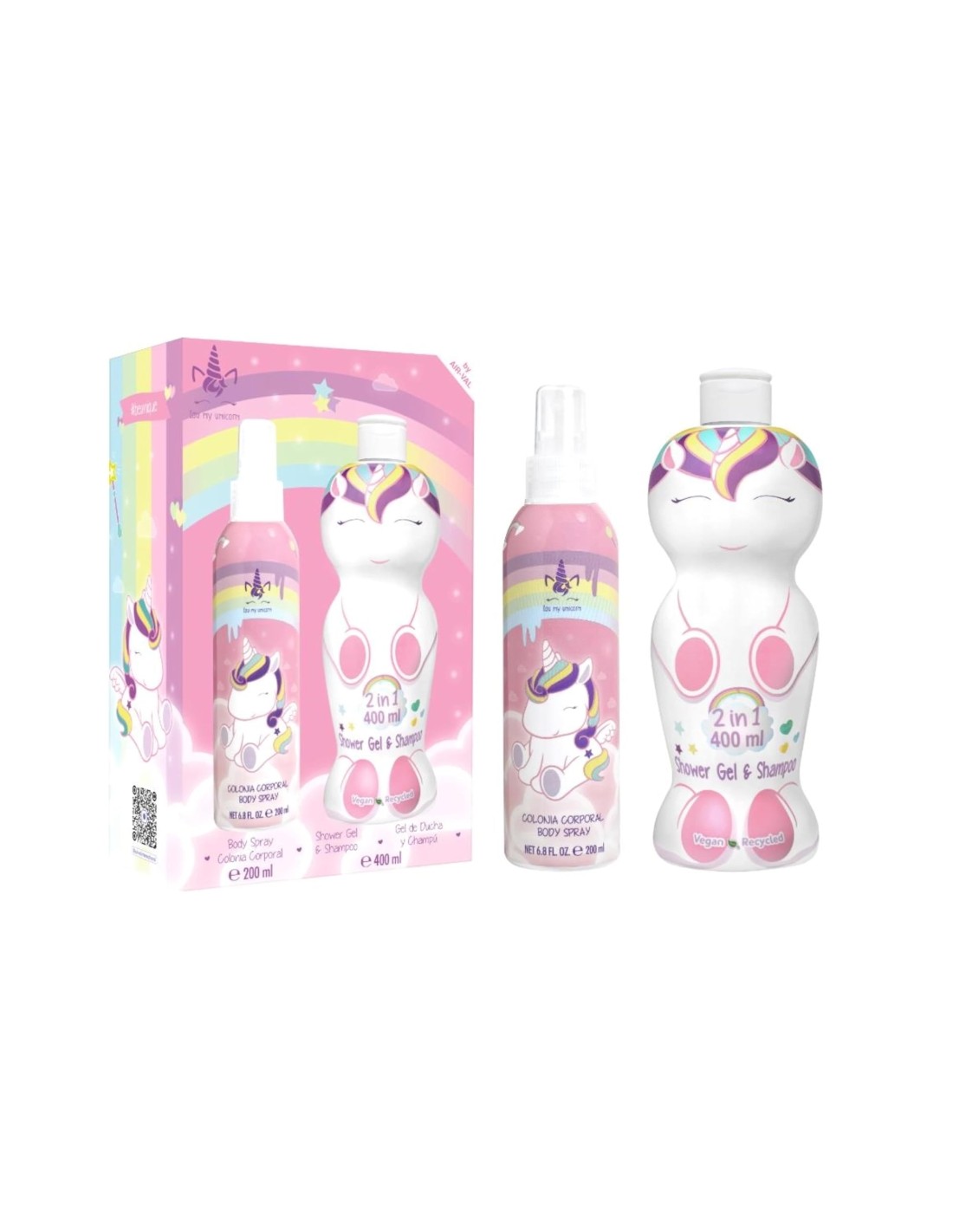 Set regalo magico a tema unicorno per bambini – Include uno spray corpo da 200 ml di Eau de Cologne e un gel doccia e shampoo 2-in-1 da 400 ml, perfetto per una freschezza quotidiana.