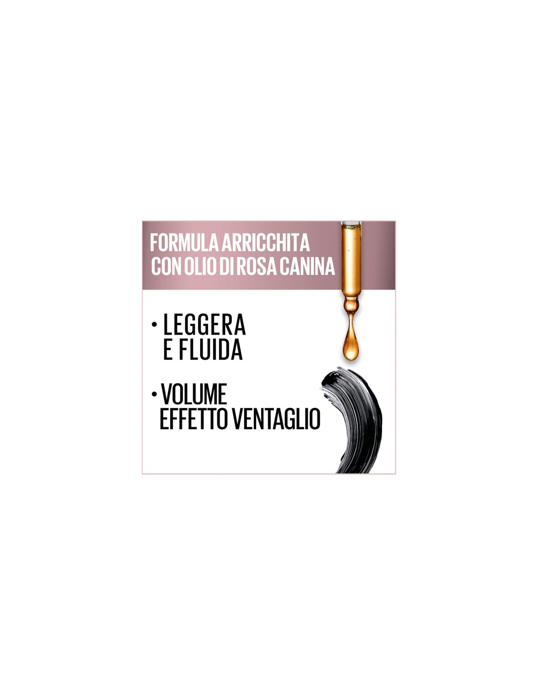 Mascara nero volumizzante per ciglia folte e setose da un angolo all'altro dell'occhio.